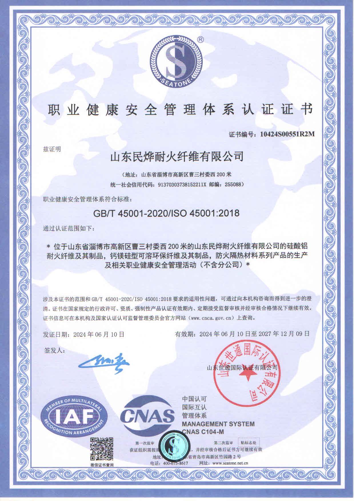 • 職業(yè)健康安全管理體系認(rèn)證證書